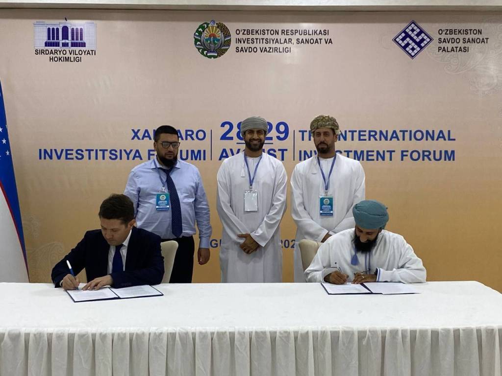 "Sirdaryoda biznes qiling" xalqaro investitsiya forumi doirasida Sirdaryo viloyati hokimining raqamlashtirish masalalari bo‘yicha maslahatchisi Oybek Anvarov hamda Oman Sultonligining "Rihal" kompaniyasi bosh direktori Azzan AI Kindi o‘rtasida hamkorlik memorandumi imzolandi.