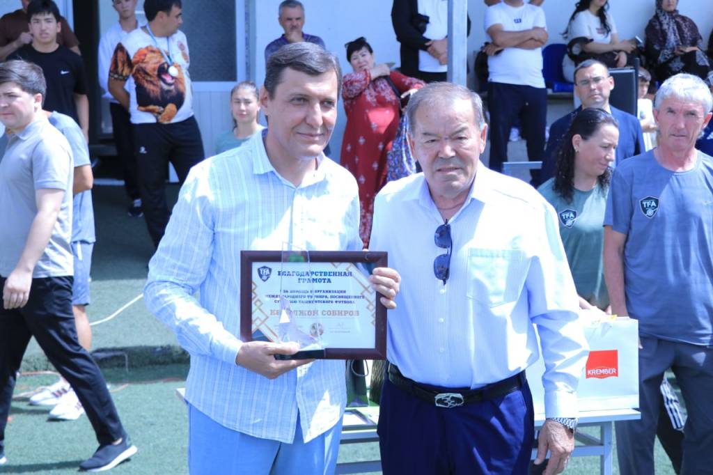 В завершение мероприятия директор Центра Кабулжон Сабиров торжественно вручил первому вице-президенту Ташкентской городской футбольной ассоциации Азамату Абдураимову нагрудный знак Центра “Народный дипломат” за большой вклад в развитие и укрепление спортивной дипломатии.