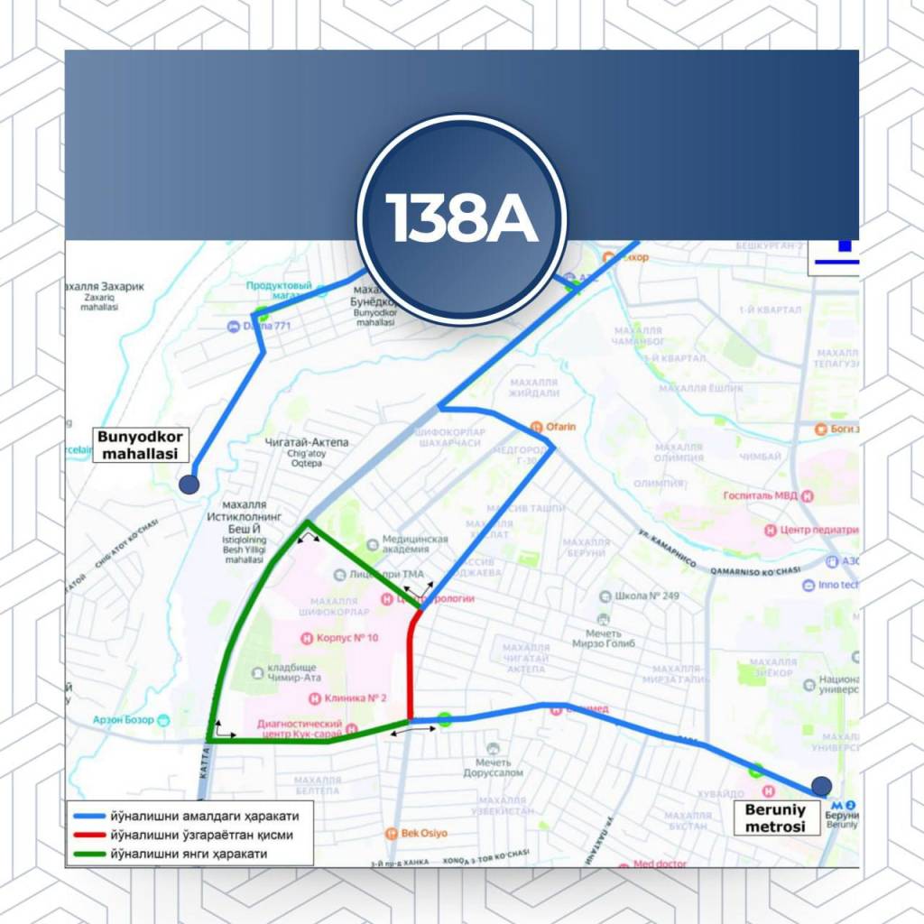 "Бунёдкор" МФЙдан қайтиб келишда ҳамда Беруний метросидан қайтишда йўл ҳаракати тартибида ўзгаришлар жорий этилади.
