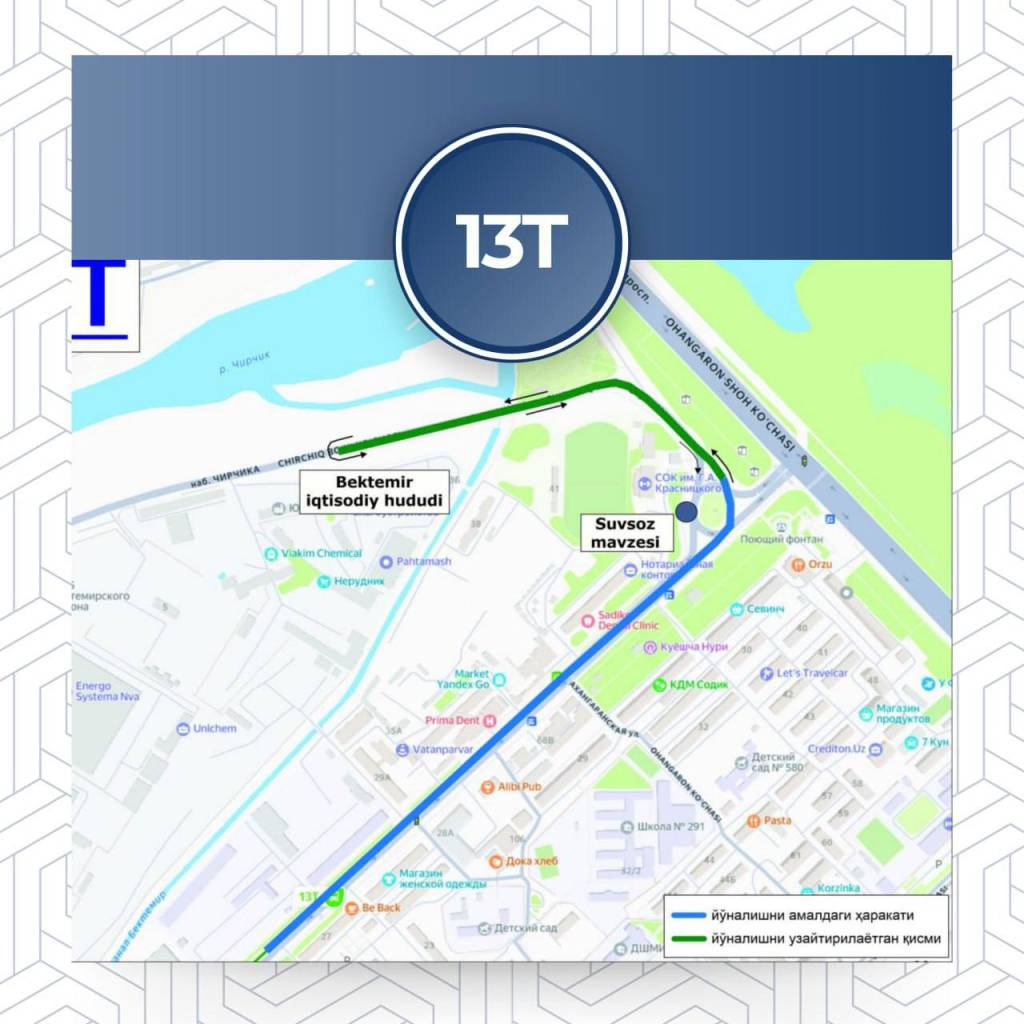 13Т-сонли “Сувсоз мавзеси (Стадион) – Тошкент вокзали” йўналиши: