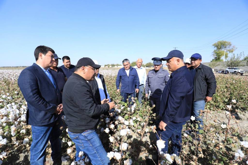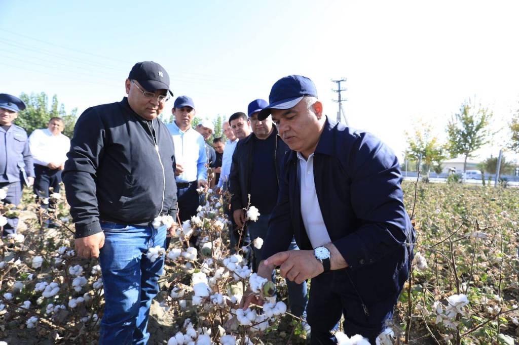 Қишлоқ хўжалиги вазири Иброҳим Абдураҳмонов Оқдарё туманидаги пахта майдонларини бориб кўрди.