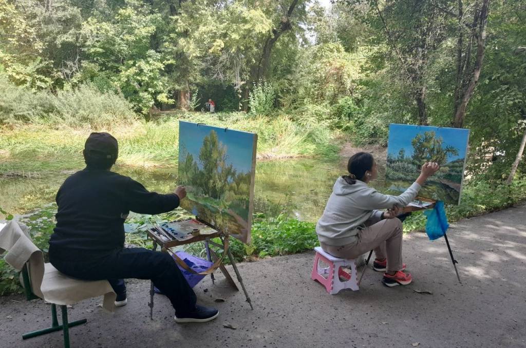 Во время пленэра опытные и начинающие художники вместе рисовали этюды. Понаблюдать за творческим процессом пришли родители молодых людей.