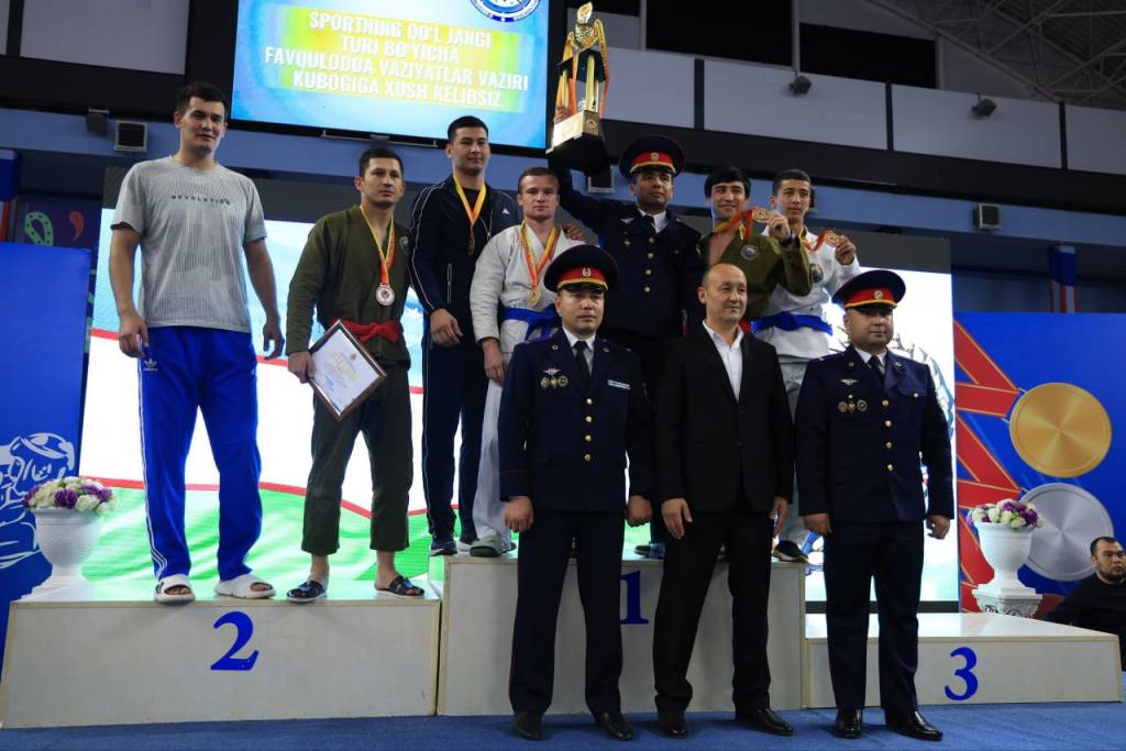 O‘zbekiston Respublikasi Favqulodda vaziyatlar vazirligi, O‘zbekiston huquqni muhofaza qiluvchi organlar qo‘l jangi federatsiyasi hamkorligida tashkil etilgan musobaqada Qoraqalpog‘iston Respublikasi va viloyatlar favqulodda vaziyatlar boshqarmalari jamoalari tarkibida tizimda xizmat qilayotgan sportchilar 8 vazn toifasida g‘oliblik uchun bahs olib bordi.