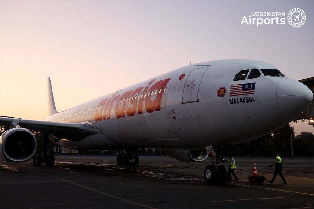 В международном аэропорту Ташкента приземлился самолет авиакомпании AirAsia первого рейса Куала-Лумпур – Ташкент.