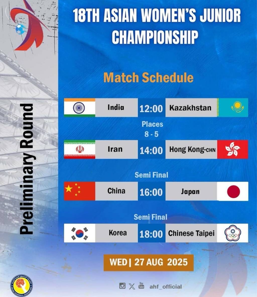 Унда 5-8 ўринлар учун Ҳиндистон-Қозоғистон ҳамда Эрон-Ҳонг Конг жамоалари рўбарў келса, 1-4 ўринлар учун кечадиган ярим финалда Хитой-Япония ва Жанубий Корея-Хитой Тайпейи гандболчи қизлари финал йўлланмаси учун куч синашади.