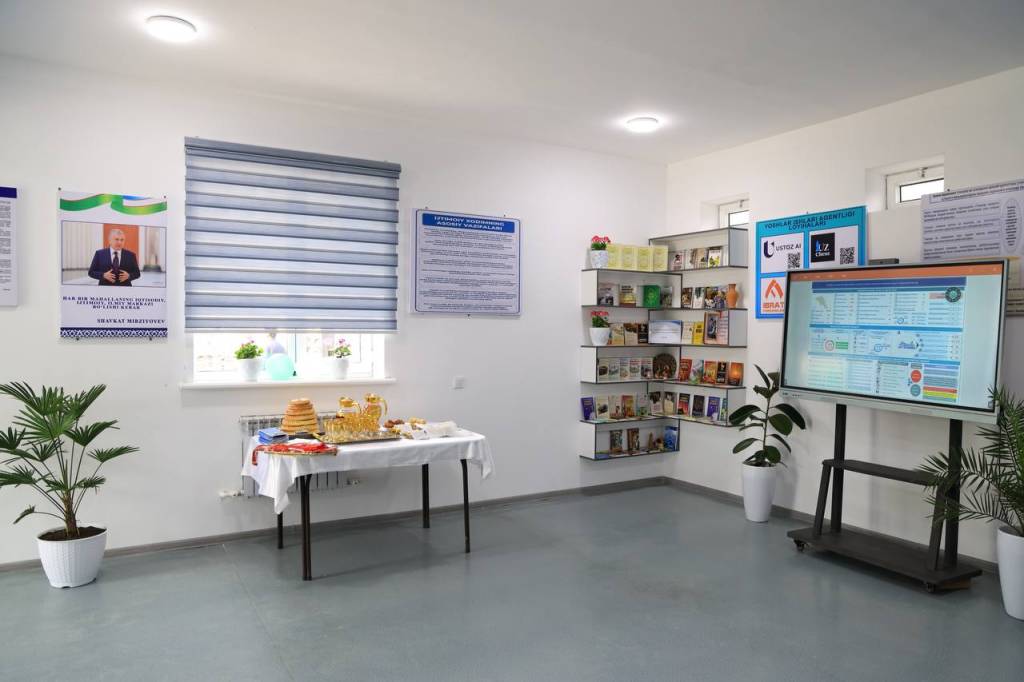 Рамзий лента қирқилиб, тадбир иштирокчилари янги маҳалла биносидаги шароитларни кўздан кечирди.