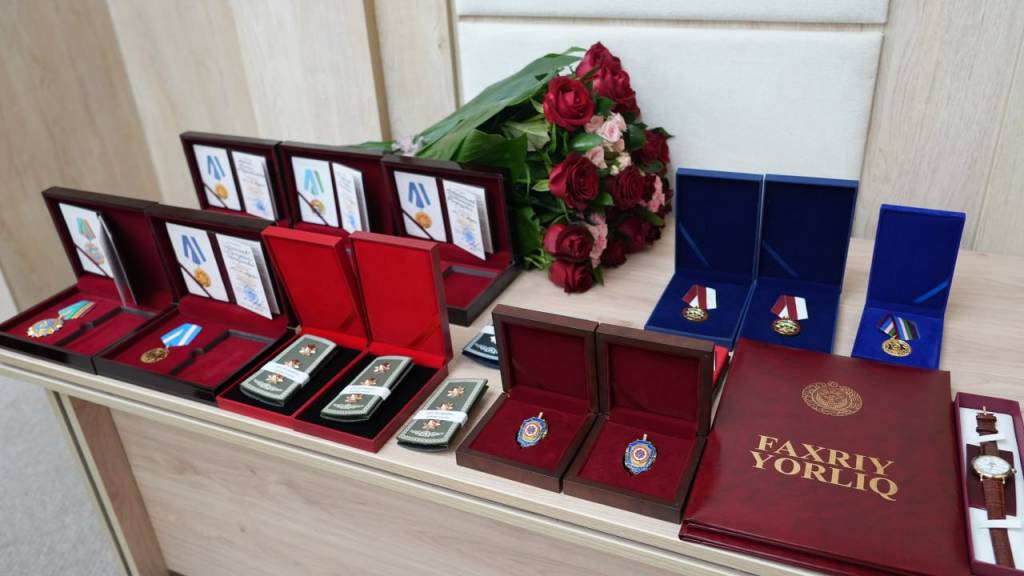 Юртимиз тараққиёти йўлида, халқимиз тинчлиги ва осойишталигини таъминлашдек масъулиятли ҳамда шарафли бурчини бажариш чоғида мардлик, жасорат ва фидойилик кўрсатгани бир гуруҳ ходимларга юксак давлат мукофотлари топширилди.