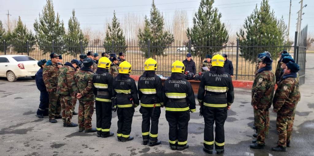 Ўзбекистон Республикаси Фавқулодда вазиятлар вазирининг тегишли буйруғига асосан содир бўлган ёнғинлар ва бошқа фавқулодда вазиятлар юзага келганда одамларни қутқариш, қидириш, моддий бойликларини хавфсиз жойга олиб чиқиш ҳамда ёнғинларни самарали ўчириш бўйича ўтказилган амалий машғулотда тизим ходимлари ўзларининг маҳорат ва тажрибаларини синовдан ўтказди.