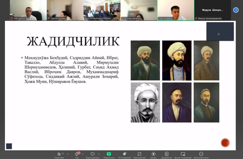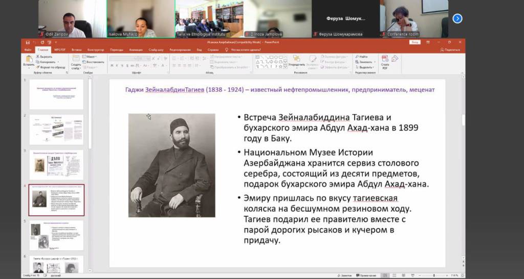 Ўзбекистон Фанлар академияси Тарих институти ва Озарбайжон Миллий Фанлар академияси А.А.Бакиханов номидаги Тарих ва этнология институти биргаликда “19-20 юз йилликларда Озарбайжон ва Ўзбекистондаги ижтимоий-маданий жараёнлар: умумийлик ва ўзига хослик” мавзусида эллараро онлайн илмий йиғин ўтказди.