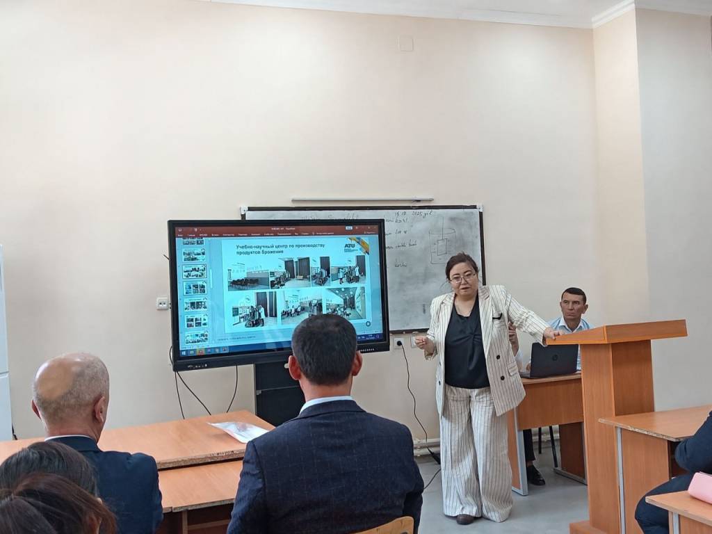 Шу куни қозоғистонлик профессорлар университетнинг Ишлаб чиқариш технологиялари факультетида бўлиб, кафедралар қошидаги лабораториялар фаолияти билан яқиндан танишдилар. Уларга университетнинг моддий-техника базаси, илмий салоҳияти, озиқ-овқат технологиялари ва қишлоқ хўжалиги маҳсулотларини сақлаш ҳамда қайта ишлаш йўналишларида амалга оширилаётган илмий тадқиқотлар ҳақида батафсил маълумот берилди.
