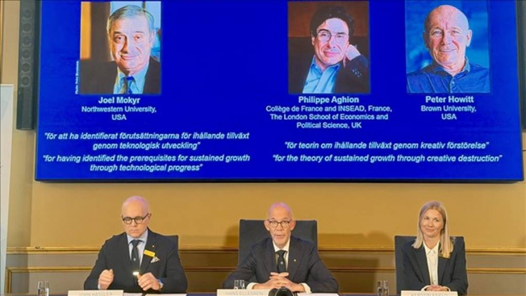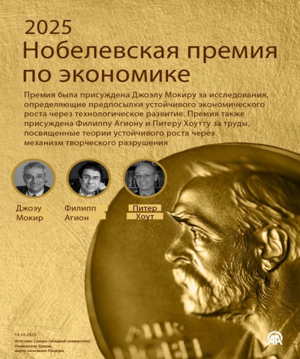 Нобелевскую премию по экономике 2025 года присудили нидерландцу Джоэлу Мокиру, французу Филиппу Агиону и канадцу Питеру Хоуитту. Об этом было объявлено на пресс-конференции в Шведской королевской академии наук.