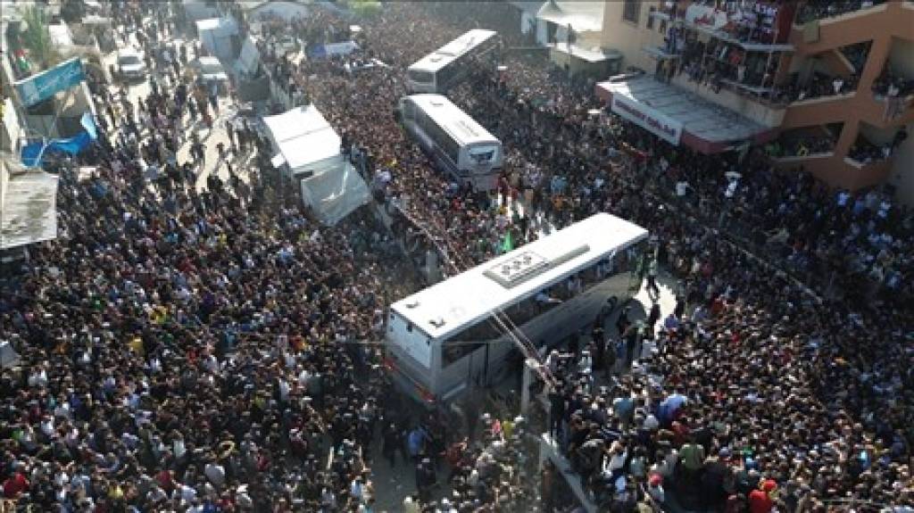 В рамках первого этапа соглашения о прекращении огня и обмене пленными были освобождены 96 палестинцев, среди которых есть лица, приговоренные к пожизненному заключению. Освобожденных доставили в культурный центр в Рамалле.
