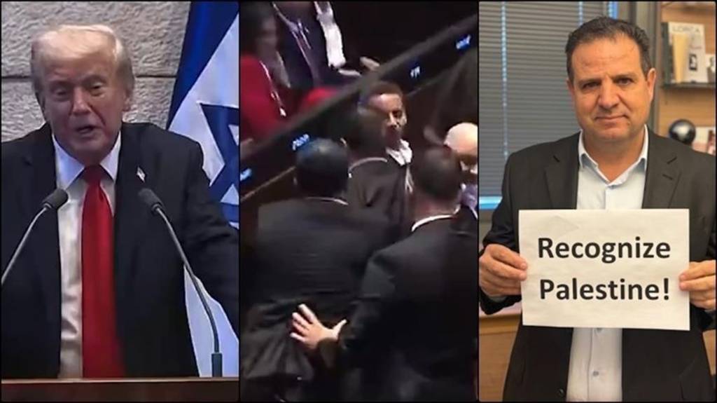 Во время выступления президента США Дональда Трампа в израильском парламенте произошел инцидент. Депутаты Эймен Оде и Офер Касиф, развернувшие плакаты с надписью «Признайте Палестину», были силой выведены из зала заседаний.