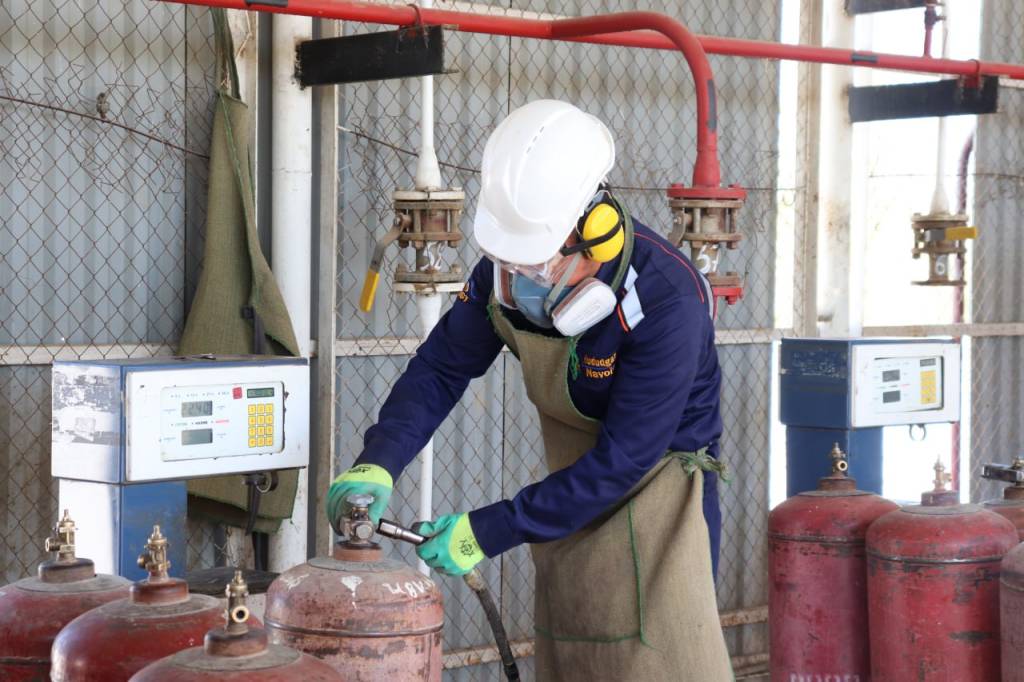 Шохобчада маиший газ баллонларнинг аввал оғир қолдиғи тўкилиб, кейин суюлтирилган газ билан тўлдирилади. Жараён шаффоф олиб борилади.