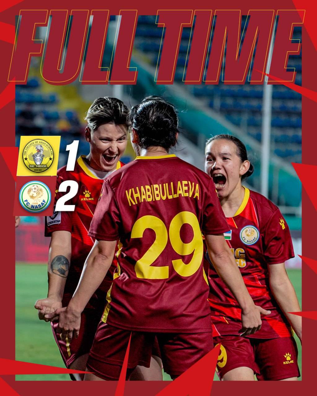 Аёллар ўртасидаги Осиё чемпионлар лигасининг дастлабки босқичида "Насаф" жамоаси "B" гуруҳида учинчи учрашувини Таиланднинг "BG College of Asian Scholars" клубига қарши ўтказди.