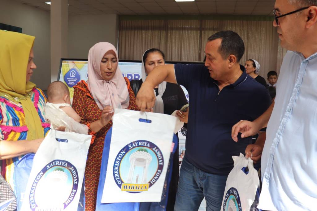 Тадбирда Ўзбекистон “Маҳалла” хайрия жамоат фонди республика бошқаруви томонидан янги 2025-2026 ўқув йилида мактабга борадиган 250 нафар биринчи синф ўқувчисини моддий ва маънавий қўллаб-қувватлаш ниятида ажратилган мактаб формалари, ўқув қуроллари ва китоблар тантанали тарзда тақдим қилинди.
