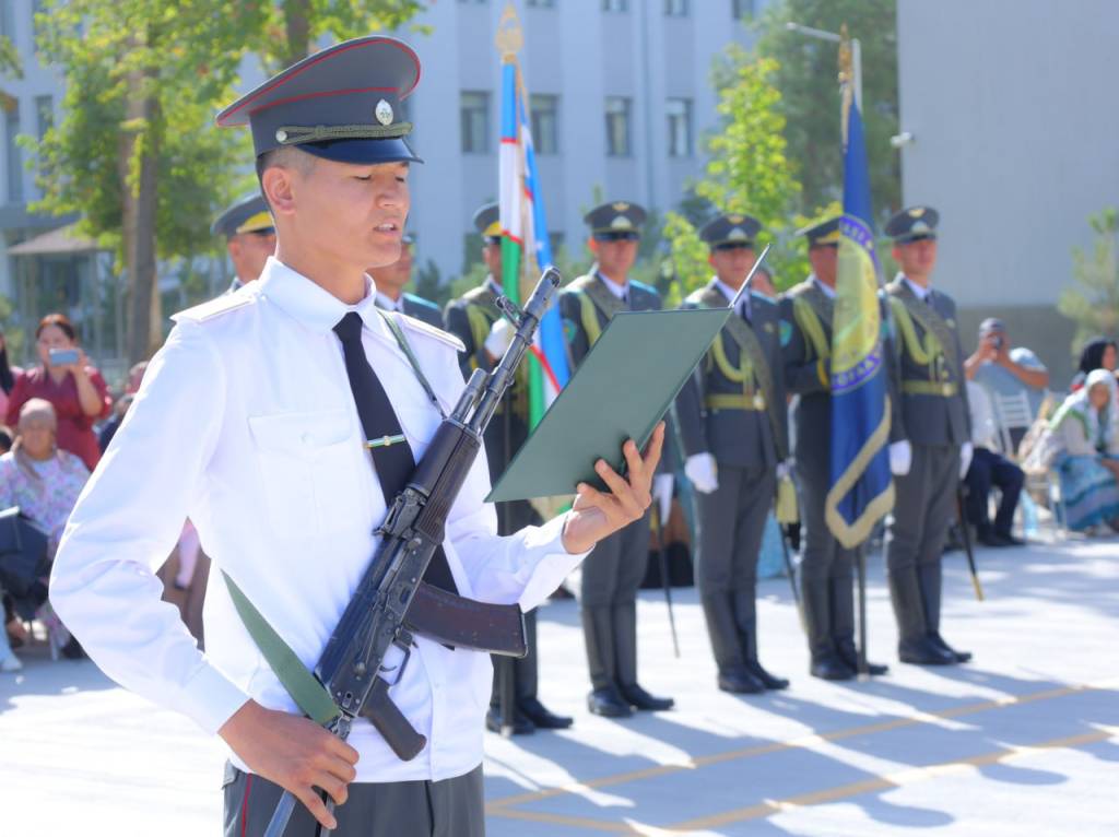 Курсантлар давлатимизнинг муқаддас рамзи бўлган байроқни ўпиб, буюк аждодларнинг пок руҳлари, Ватани олдидаги бурчини ҳалол бажаришга бел боғлаб, виждони, ор-номус ва шаънини ўртага қўйиб, Ўзбекистон Республикасига, халқига ва Президентига бир умр содиқ бўлишга, ҳар қандай машаққатли синов ва қийинчиликларда ҳам эл-юртининг юксак ишончини оқлашга яқинлари ва кенг жамоатчилик гувоҳлигида тантанали равишда онт ичди.