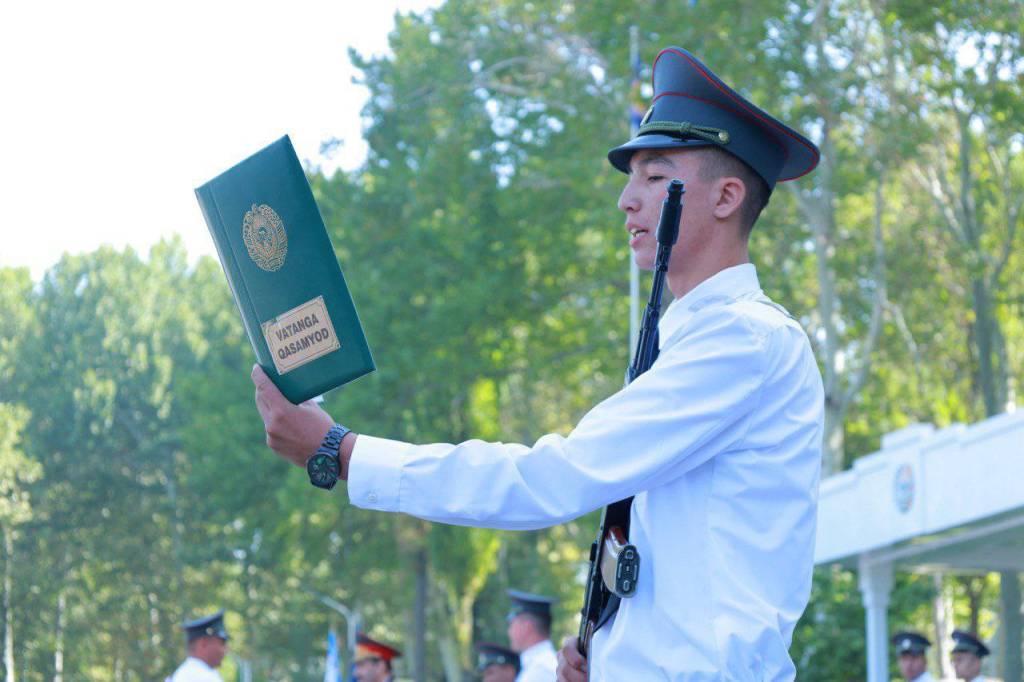 Хусусан, Ўзбекистон Республикаси ҳарбий хавфсизлик ва мудофаа университетида мазкур муассасага янги қабул қилинган курсантлар Ватанга қасамёд қабул қилди.