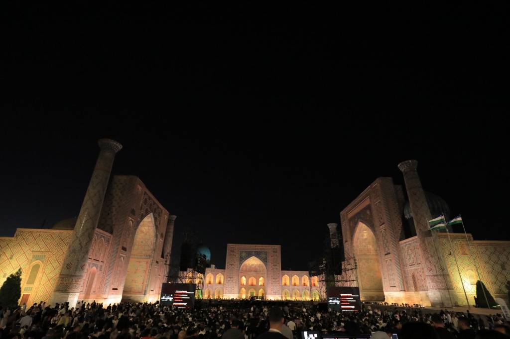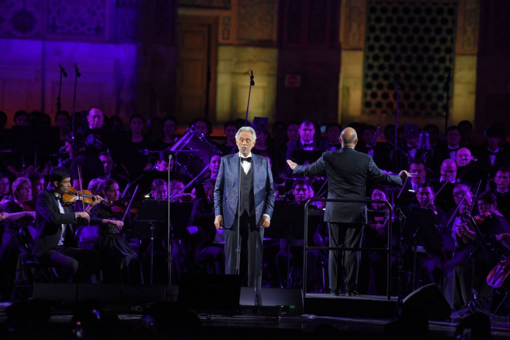 Самарқанд шаҳридаги Регистон майдонида илк бор италиялик қўшиқчи Андреа Бочеллининг жонли ижродаги концерти бошланди.