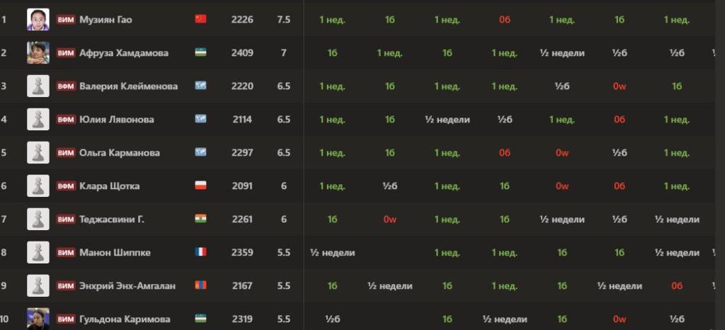 Ушбу ёш тоифасида етакчилик қилаётган хитойлик Музиян Гао ҳисобида 7,5 очко мавжуд.