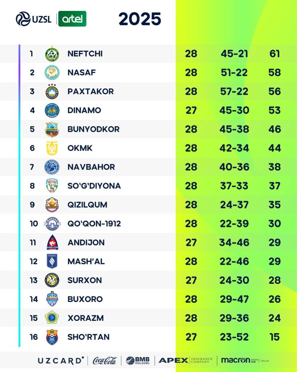Шу тариқа “Сўғдиёна” меҳмонда муҳим ғалабани қўлга киритди ва чемпионат жадвалида юқори поғоналар учун курашни давом эттирмоқда.