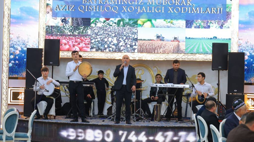 Тадбирни вилоят ҳокими Ботир Зарипов очиб, соҳа вакилларини қишлоқ хўжалик ходимларини эришган муваффақиятлари, соҳадаги ютуқлари билан қизғин табриклади. Фидокорона меҳнати билан тупроқдан ноз-неъмат ундириб, халқимиз дастурхонини тўкин қилиб келаётган миришкор деҳқон ва фермерлар, моҳир боғбон ва чорвадорларга, омилкор агроном ва механизаторлар, кластерларнинг тажрибали раҳбарлари ва ходимлари, соҳа фахрийларига ўзининг ҳурмат-эҳтиромини ва эзгу тилакларини билдирди.