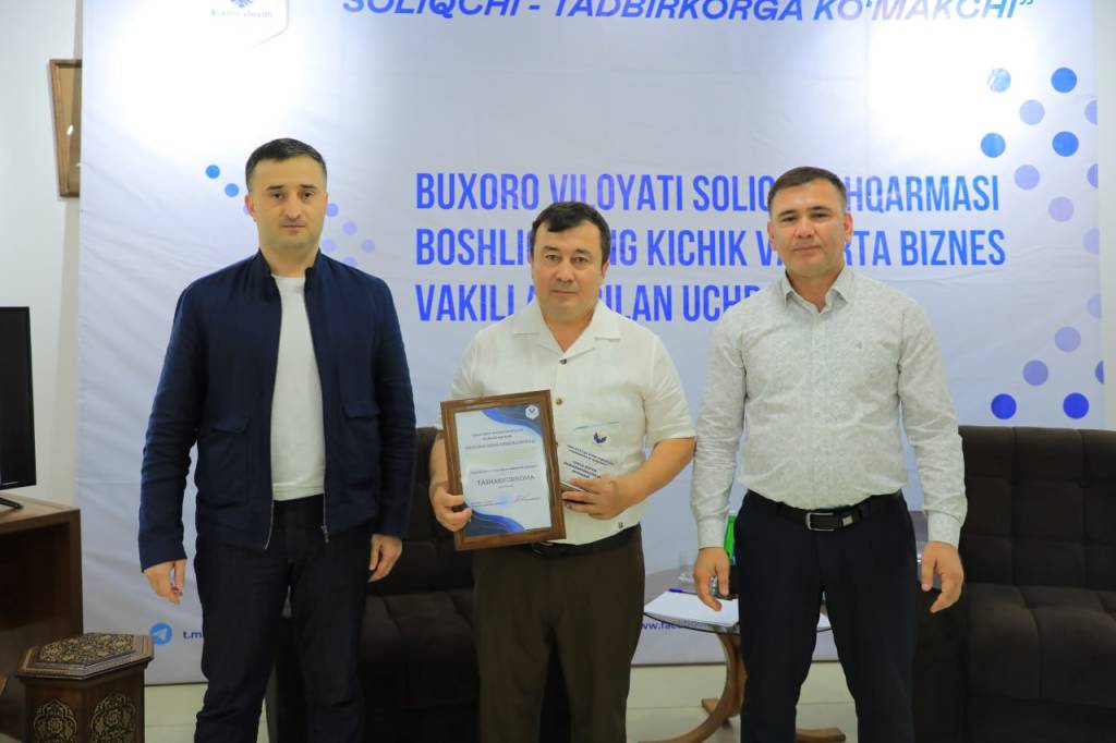 Тадбир якунида мамлакатимиз иқтисодиёти ва хусусий сектор ривожига муносиб ҳисса қўшаётган илғор ва ташаббускор тадбиркорларга миннатдорлик билдирилиб эсдалик совғалари топширилди.