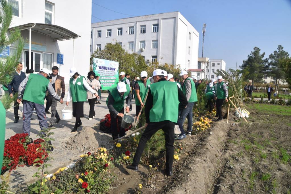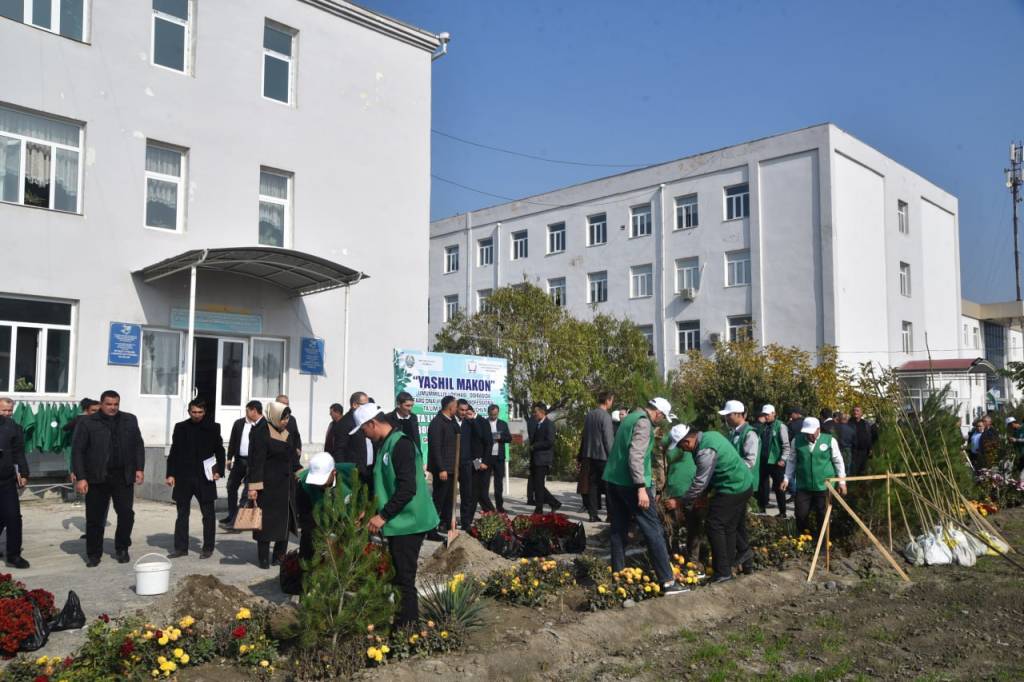 Шундан сўнг барча қатнашчилар, касб-ҳунар мактаби ўқитувчи ва ўқувчилари ажратилган майдонларга кўчатлар, гул ниҳолларини ўтқазди.