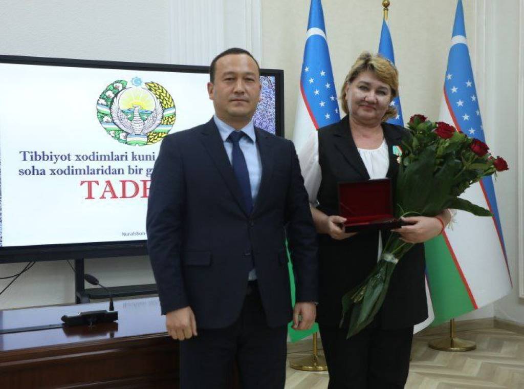 Нурафшон шаҳрида уларга давлат мукофотлари тантанали тарзда топширилди. Мукофотларни ўз эгаларига вилоят ҳокимининг биринчи ўринбосари Отабек Турсунов топширди. Бундай юксак шарафга сазовор бўлганлар давлатимиз раҳбарига кўрсатилган эътибор учун чексиз миннатдорлик билдириб, юртимизда тиббиёт соҳасини янада ривожлантириш, халқимиз дардига дармон бўлишдек шарафли ва масъулиятли вазифада ҳамиша собит бўлишларини таъкидлади.