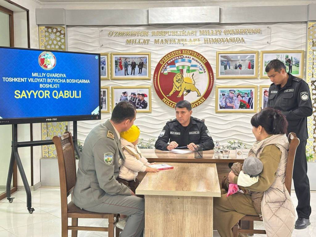 Миллий гвардия Тошкент вилояти бўйича бошқармаси томонидан ҳарбий хизматчилар ва уларнинг оила аъзоларининг ижтимоий ҳимоясини қўллаб қувватлаш мақсадида “Шукроналик — оиладан бошланади” мавзусида тадбир ташкил этилди. Унда Тошкент вилояти ҳокимлиги, Миллий гвардия Тошкент вилояти бўйича бошқармаси, Чирчиқ ҳарбий прокуратураси, Ўзбекистон Касаба уюшмалари федерацияси Тошкент вилояти кенгаши, вилоят Оила ва хотин-қизлар бошқармаси мутасадди раҳбарлари, ҳарбий хизматчилар ва уларнинг оила аъзолари иштирок этди.