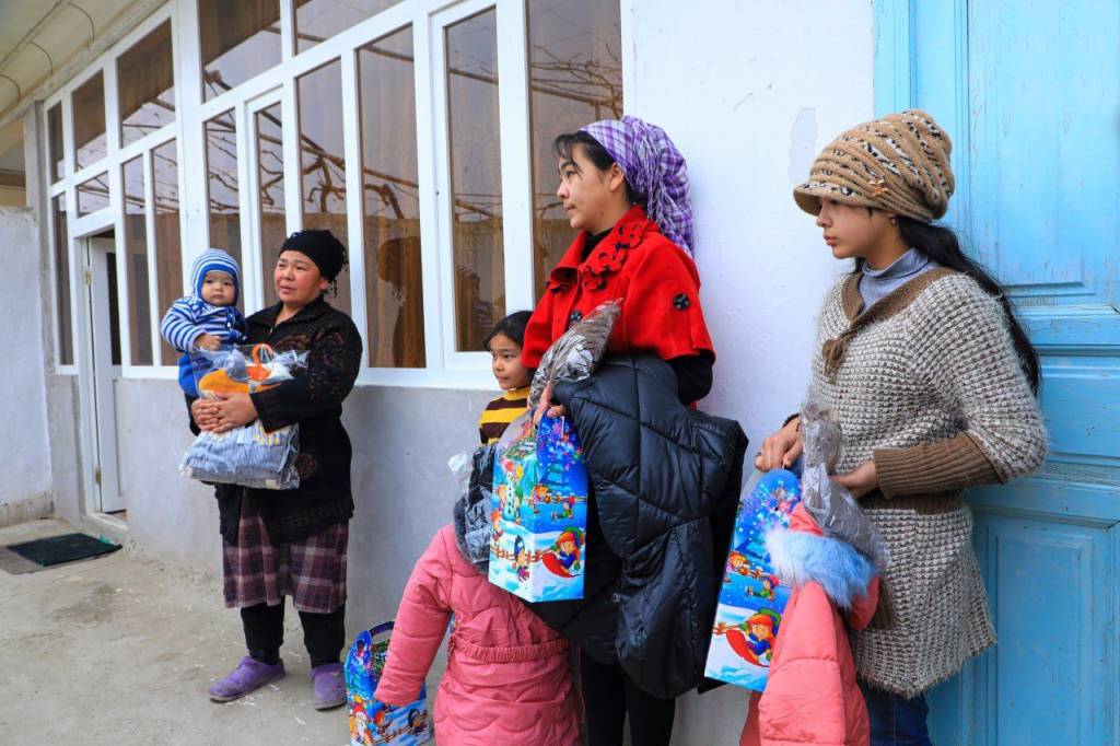 Давлатимиз раҳбари номидан хонадонларга Янги йил совғалари, озиқ-овқат маҳсулотлари, кийим-кечаклар тақдим этилди. "Оқбилол" маҳалла фуқаролар йиғинида яшовчи Жамолиддин Алиев хонадонида оила тўнғич ўғли қуёнчиликка қизиқишини билдирди. Вилоят ҳокимининг кўрсатмаси билан оилага қуён қафаси ва зотдор қуёнлар олиб келиб бериладиган бўлди. "Қурилиш" маҳалла фуқаролар йиғинида яшовчи Соҳиб Маҳкамовнинг кекса онасига эса ногиронлик аравачаси совға қилинди.