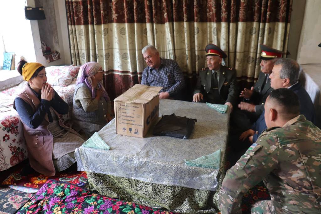 В соответствии с Указом Президента «О мерах по повышению эффективности деятельности Общественного совета при Министерстве обороны Республики Узбекистан» от 11 апреля 2023 года определены задачи по дальнейшему повышению авторитета наших Вооруженных Сил. Стало доброй традицией оказание уважения и почета военнослужащим, проявившим героизм в период службы в рядах армии. Накануне 9 мая – Дня памяти и почестей ответственные работники областного управления по делам обороны, областного отделения благотворительного общественного фонда «Махалла» и Наманганского районного хокимията посетили дом Камолиддина Тошпулатова.