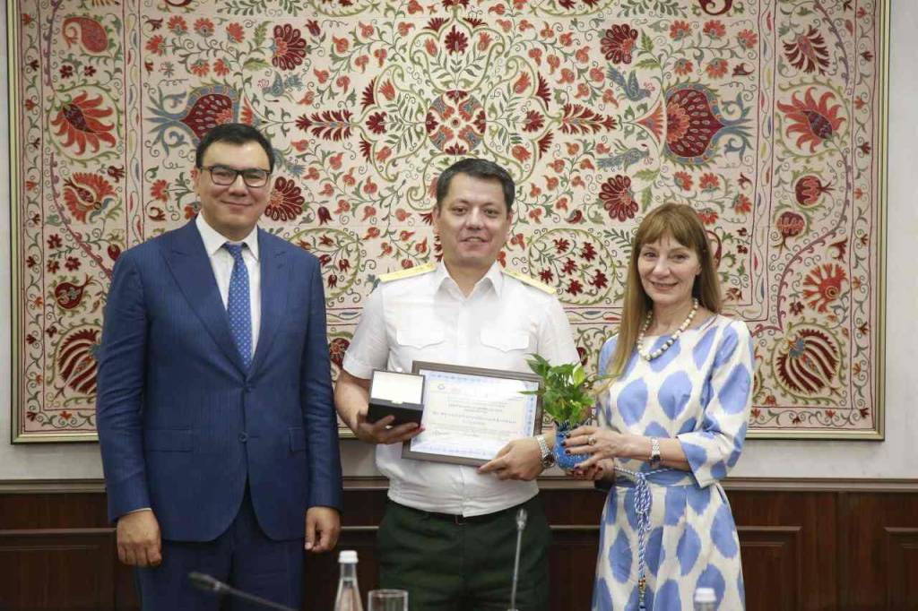 Tadbirda ishtirok etgan 8 nafar bojxona xodimi hamda ular faoliyat ko‘rsatayotgan boshqarma va bojxona postlariga mukofotlarni Ekologiya, atrof-muhitni muhofaza qilish va iqlim o‘zgarishi vaziri Aziz Abduhakimov hamda BMT Taraqqiyot dasturi doimiy vakili Matilda Dimovskalar topshirdi.