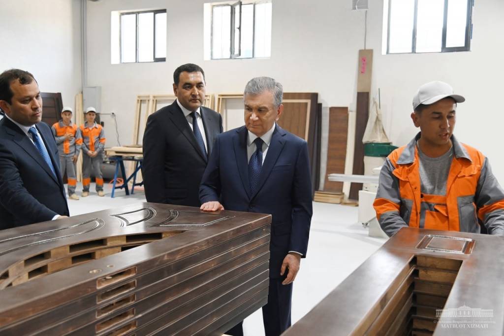 Le chef de l'État s'est familiarisé avec un complexe de fabrication de meubles dans le district de Bouvaida de Ferghana.