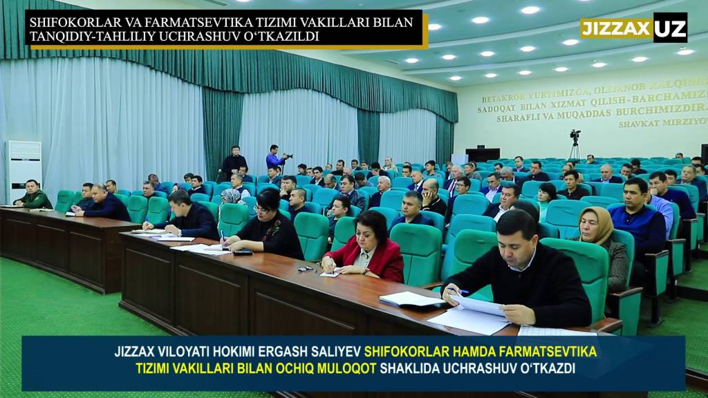Жиззах вилояти ҳокими Эргаш Салиевнинг шифокорлар ҳамда фармацевтика тизими вакиллари билан видеоселектор тарзида ўтган учрашувида вилоят ҳокимининг ўринбосарлари, фармацевтика соҳасининг раҳбар ва масъуллари, тиббиёт ходимлари ҳамда оммавий ахборот воситалари вакиллари, шаҳар, туман ҳокимлари, мутасадди ташкилотлар раҳбарлари иштирок этди.