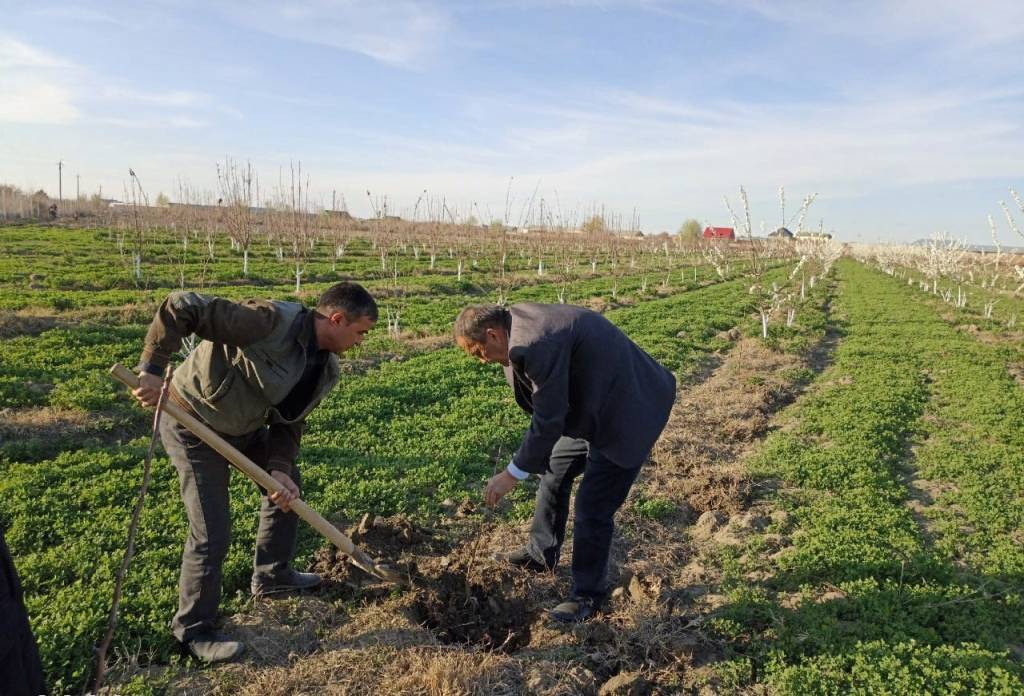 –“Yashil makon” umummilliy loyihasi doirasida belgilangan ishlarni jadallashtirish to‘g‘risida mavsum oldidan hududdagi Sarmijon, Guliston, G‘ovshun, Ulfatbibi, Paxtaobod, Zarangari kabi 13 ta ma’muriy hududda mutaxassislar ishirokidagi ko‘rgazmali seminarlarni tashkil etib, xo‘jaliklarga zarur tavsiya va topshiriqlar berilgan, – deydi tuman hokimining qishloq va suv xo‘jaligi masalalari bo‘yicha o‘rinbosari F. Jabborov. – Bu borada ayni paytda “Kalon masjid”, “Abdusalom Sattor saxovati”, “Ramazon Soliyev-Sardor”, “Mahmud bobo-2000”, “Qobil Esan Mustafo”, “Avaz Ismatov zamini” kabi fermer xo‘jaliklarida tut va tok ko‘chatlarini o‘tqazish, dala atroflarini ko‘kalamzorlashtirish ishlari uyushqoqlik bilan olib borilmoqda.