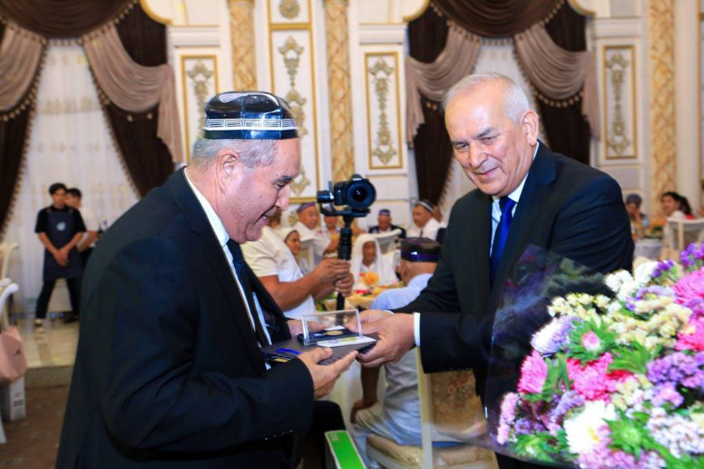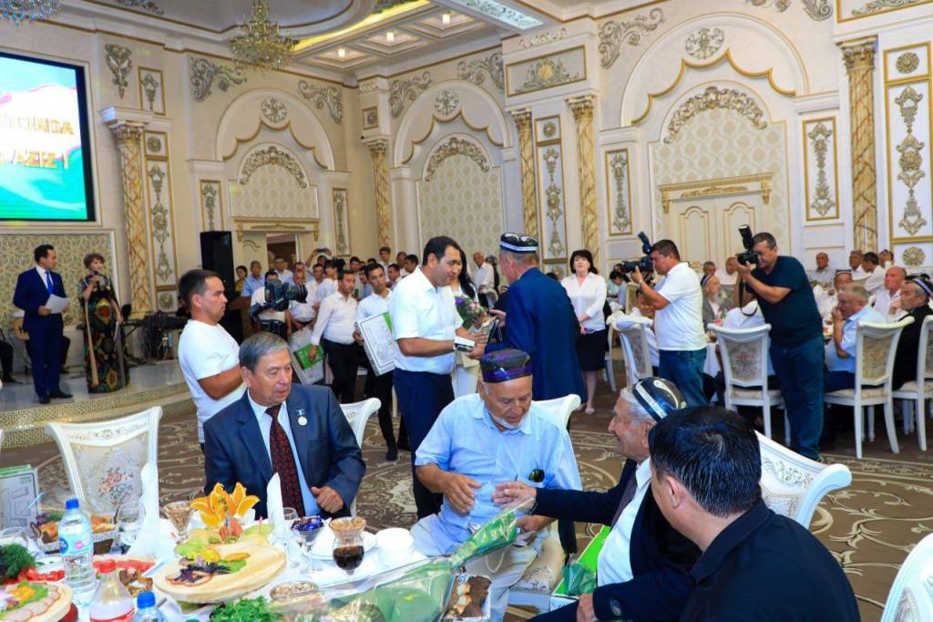 Тадбир давомида мамлакатимизнинг иқтисодиёт, ишлаб чиқариш, илм-фан, маданият, таълим, соғлиқни сақлаш ва бошқа соҳаларда кўп йиллар давомида ҳалол ва самарали меҳнат қилган, шунингдек, ҳаётини оилалар мустаҳкамлигини сақлаш, она-Ватанга муҳаббат, истиқлол ғояларига садоқат руҳида тарбиялаш ишларига бағишлаб келаётган 60 нафар отахон ва онахонларга давлатимизнинг I, II, III даражали “Меҳнат фахрийси” кўкрак нишонлари тантанали топширилди.
