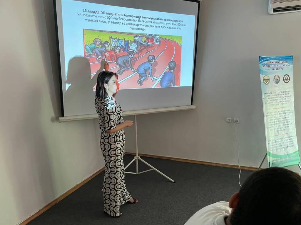 Ўзбекистон фермер, деҳқон хўжаликлари ва томорқа эр эгалари кенгаши ҳузуридаги Ўзбекистон агро ахборот инновация маркази амалга ошираётган “Лидер фермер аёллар орқали қишлоқ хотин-қизларини қишлоқ хўжалигида қўшилган қиймат занжирига жалб қилиш ва уларнинг даромадини яхшилаш” лойиҳаси доирасида Сурхондарё вилояти Термиз туманида семинар-тренинг бўлиб ўтди. Aмерика Қўшма Штатларининг Ўзбекистондаги ваколатхонаси, Ўзбекистон фермер, деҳқон хўжаликлари ва томорқа ер эгалари кенгаши тизимидаги агро ахборот инновация маркази, Оила ва хотин-қизлар қўмитаси ҳамкорлигида ташкил этилган ушбу семинар-тренингда вилоятда фаолият юритаётган фермер хотин-қизлар иштирок этди.