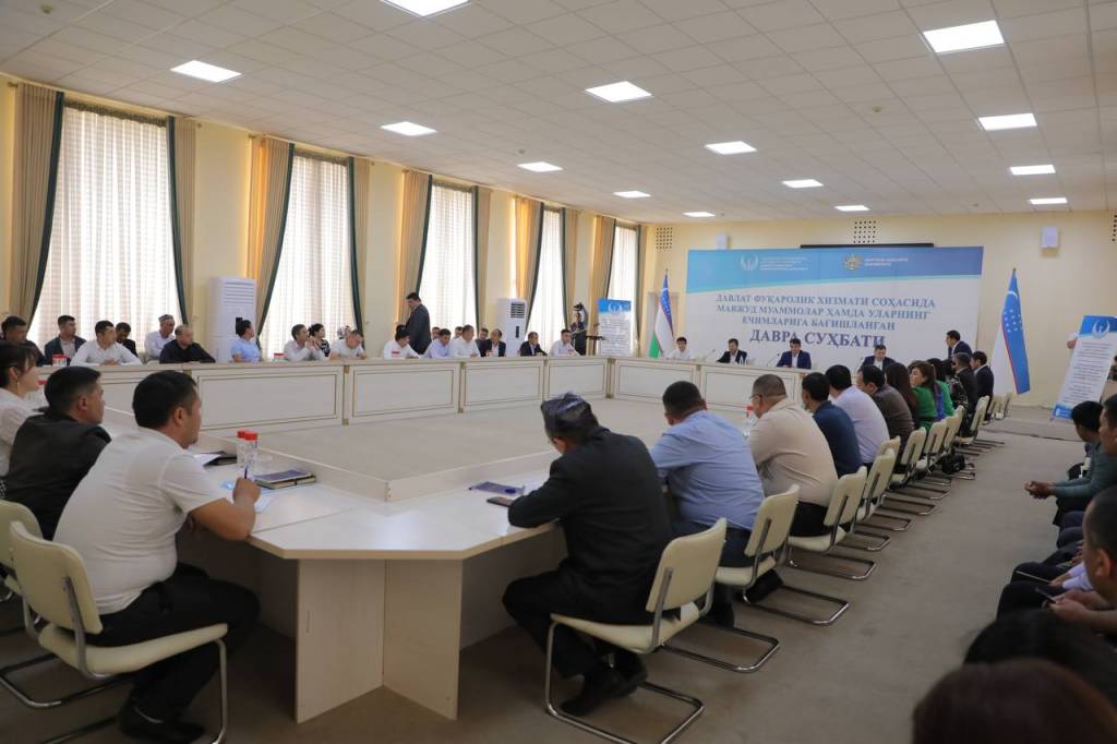 Ўзбекистон Республикасининг “Давлат фуқаролик хизмати тўғрисида” ги қонуни қабул қилинди ва ушбу қонуннинг 8-моддаси билан махсус ваколатли давлат органи томонидан кадрлар сиёсати соҳасида давлат фуқаролик хизмати соҳасидаги ягона давлат сиёсатини амалга ошириши белгиланган. Шунингдек, қонунда ваколатли орган томонидан давлат фуқаролик хизматчиларини ҳуқуқий ва ижтимоий жиҳатдан ҳимоя қилиш вазифаси ҳам юклатилган. Ўтказилган сайёр қабулнинг асосий мақсади ҳам бугун барча давлат идораларида халқни рози қилишдек улуғ мақсадлар учун кеча-ю кундуз хизмат қилаётган давлат хизматчиларига яратиб берилаётган шароитлар, амалдаги меҳнат қонунчилигига амал қилиниши, очиқ танловлар билан боғлиқ мурожаатларни кўриб чиқиш белгиланган.
