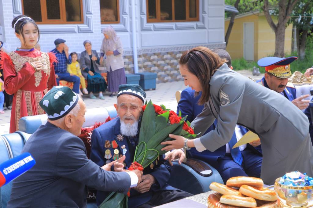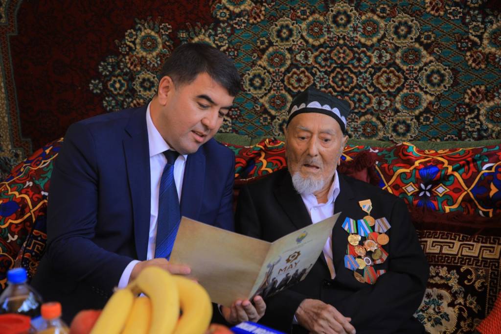 9 may – Xotira va qadrlash kuni munosabati bilan viloyat sektor rahbarlari, mudofaa ishlari boshqarmasi, Davlat xavfsizlik xizmati mas’ul xodimlari, Milliy gvardiya vakillari, yoshlar tashkiloti faollari hamkorligida urush qatnashchilarining xonadonlariga yo‘qlagani borgan Namangan viloyati hokimi Shavkat Abdurazzoqov ikki asrni ko‘rgan tabarruk nuroniylarga O‘zbekiston Respublikasi Prezidentining tabrigini o‘qib eshittirib, 18 million so‘m pul mukofoti hamda sovg‘alarni topshirdi. Shuningdek, urush qatnashchilarining har biriga Namangan viloyati hokimligi, viloyat Nuroniylar jamoatchilik kengashinining bayram tuhfalari ulashildi.