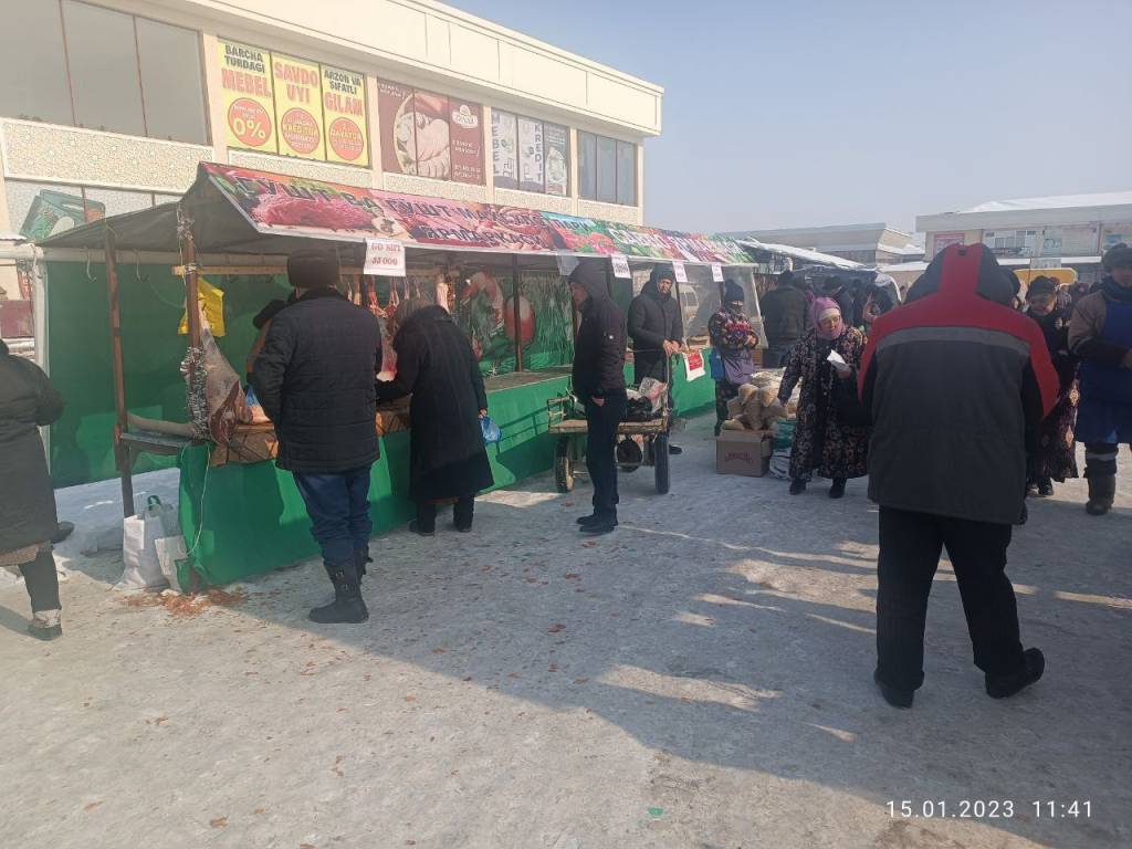 Tuman hokimligi tomonidan bozorda davom etayotgan yarmarka nazorat qilinib, narx-navoni sun’iy ravishda oshirmaslik, sanitariya-gigena qoidalariga rioya etish yuzasidan mas’ullarga tegishli topshiriqlar berildi.