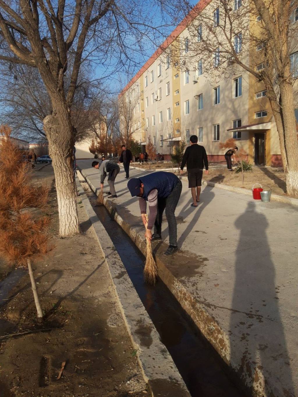 Bu borada mahallaga biriktirlgan hokim yordamchilari, faollari va yoshlar yetakchilari bosh bo‘lmoqda. Yoshlarning kuchi bilan ariqlar tozalanib, daraxtlar butalib, hovli joylar obodonlashtirilmoqda, mahallalar ichki yo‘llarining yog‘ingarchiliklar natijasida buzilgan joylari tekislanyapti. Ehtiyojmand, yakka yolg‘iz qariyalarning tomorqalari og‘darilib, turli daraxt va gul ko‘chatlari ekilmoqda.