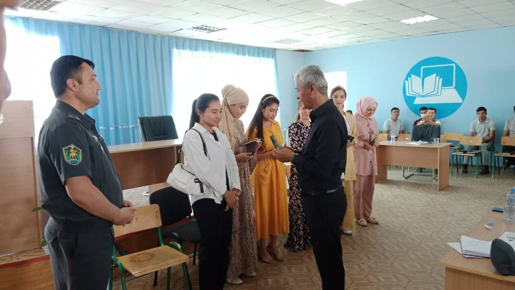 Sharof Rashidov tumani hokimi va mudofaa ishlari bo‘limi boshlig‘i yoshlarni harbiy kasbga yo‘naltirish maqsadida “Kelajakdagi kasbim” mavzusida yoshlar bilan uchrashuv o‘tkazdi. Unda tibbiyot texnikumini tamomlab, O‘zbekiston Qurolli Kuchlari safida xizmat qilish istagini bildirgan qizlarning 6 nafariga harbiy guvohnomalar topshirildi.