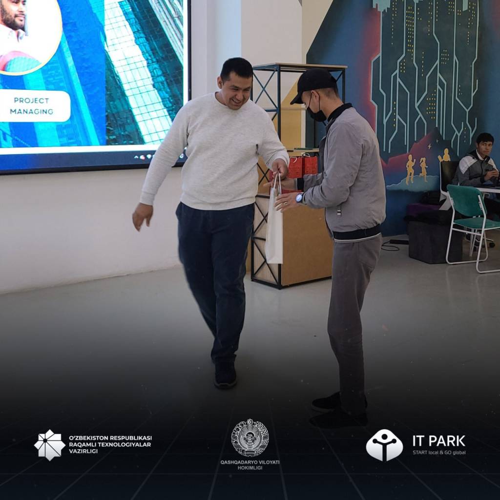 В рамках данного постановления в Кашкадарьинской области завершился проект “JOB FAIR”, проводимый с целью трудоустройства молодежи. Активисты Кашкадарьинского филиала IT-Park провели ярмарку вакансий, призванную обеспечить занятость молодых людей, получивших образование в области информационных технологий и испытывающих трудности в поиске работы. В проекте приняли участие компании-резиденты с более чем 100 ввакансиями. Специалисты провели тренинг, активных участников которого наградили призами.