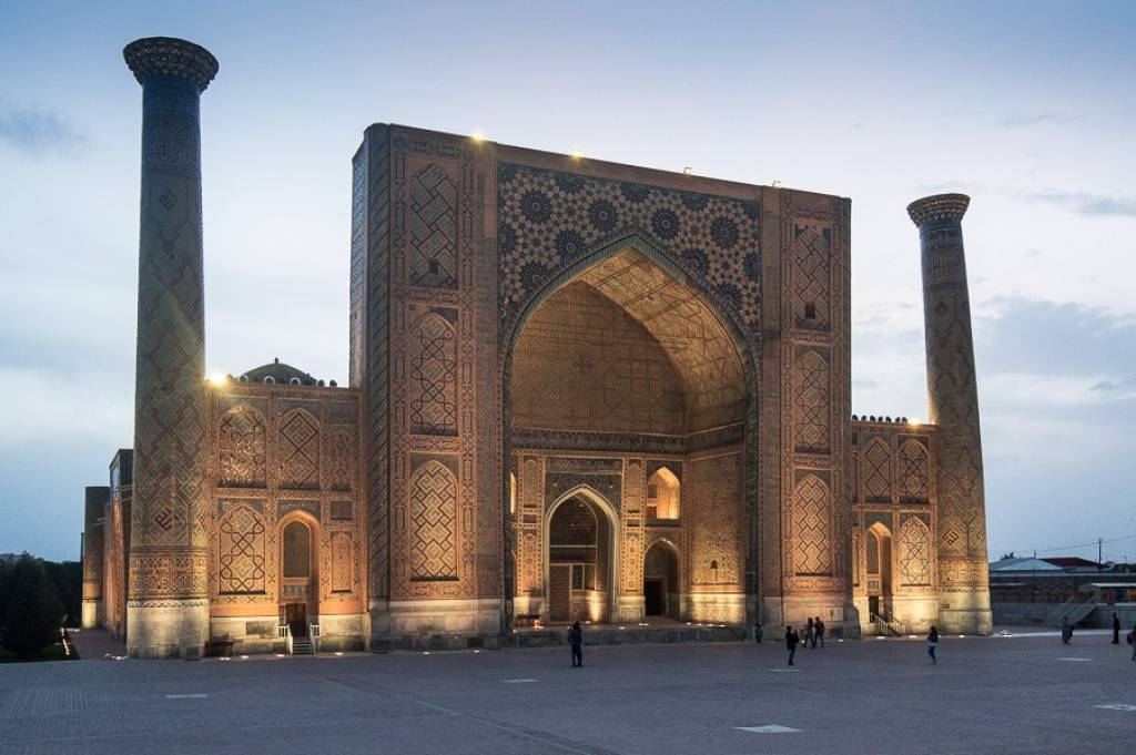 – Внук Амира Тимура Улугбек превратил город в интеллектуальный центр, построив в 1420 году первое из трех медресе, которые сегодня образуют Регистан, самое символическое место в Узбекистане, – говорится в статье. –Эти три гигантские сооружения с их 50-метровыми айванами, невероятными украшениями, буйством мозаики и глазурованной плитки, а также бирюзовыми куполами, касающимися лазури, окружены внушительными минаретами, которые осмеливаются поддерживать небо. Внутри одного из них несравненная мечеть Тилла Кари идет еще дальше: залитая золотом и темно-синим цветом и усеянная россыпью звезд, она сверкает и ослепляет невероятно, особенно если ей подражают небеса, или наоборот».