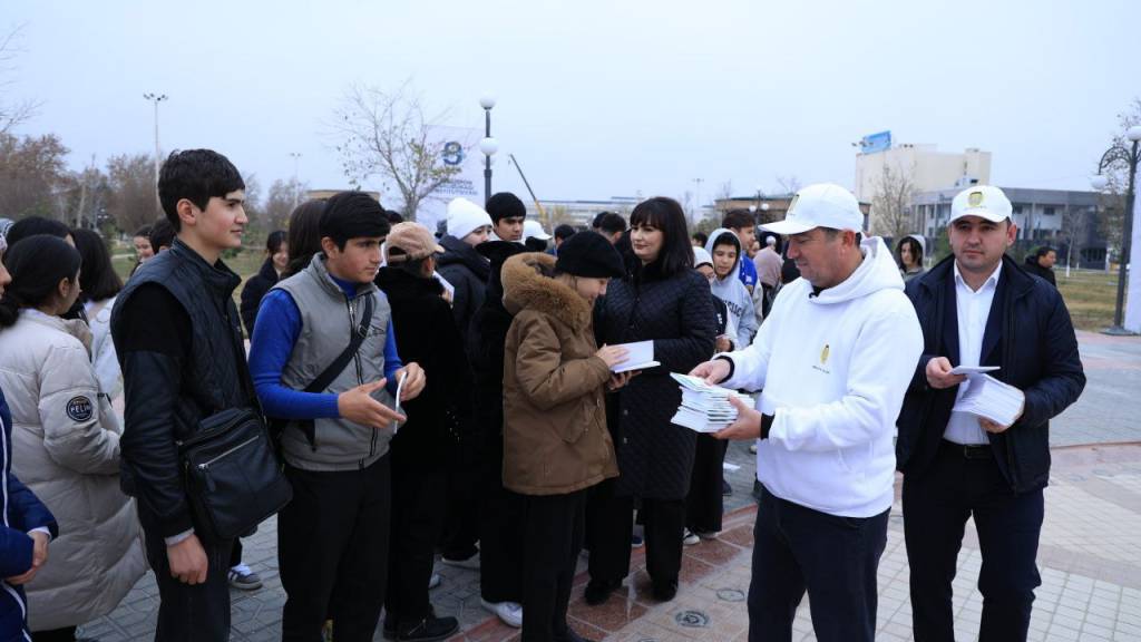 Адлия бошқармаси томонидан тадбирда фаол иштирок этган ёшларга янги таҳрирдаги Ўзбекистон Республикаси Конституцияси китоблари тарқатилди.
