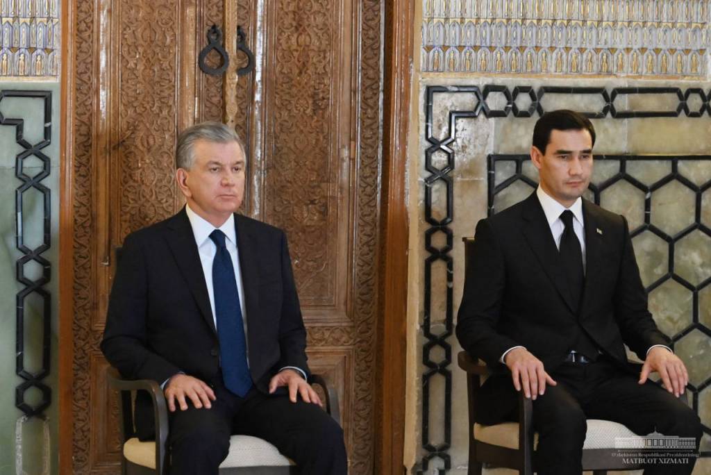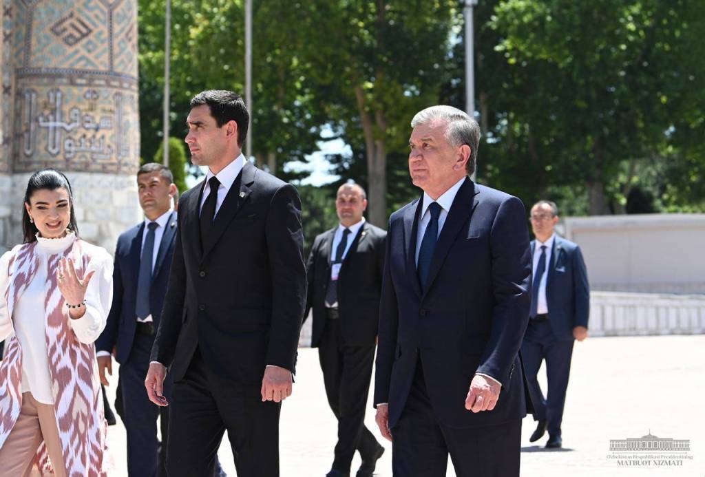 À Samarkand, le président turkmène Serdar Berdimuhamedov accompagné du chef de notre Etat a commencé sa visite par le mausolée d'Islam Karimov.