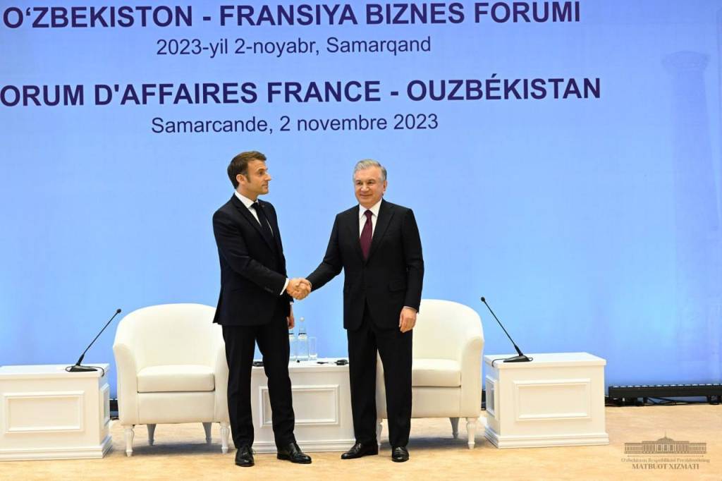 Al inaugurar la reunión en la antigua Samarcanda, el presidente de Uzbekistán saludó calurosamente al presidente Emmanuel Macron y a los representantes de la élite empresarial francesa.