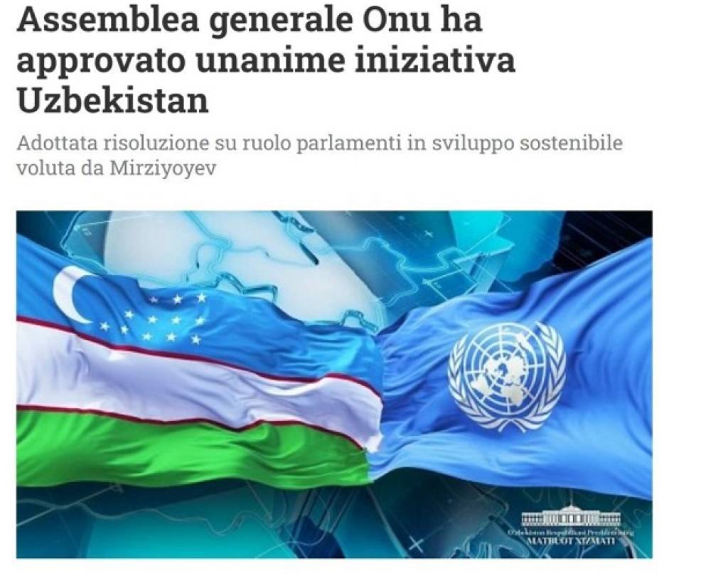 РИМ. Ведущее итальянское информационное агентство «Askanews» опубликовало статью «Генассамблея ООН единогласно одобрила инициативу Узбекистана».