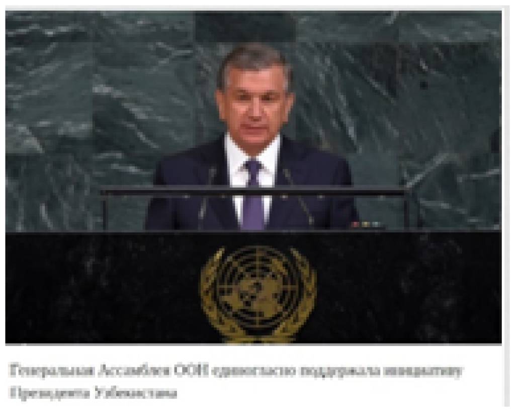 АШХАБАД. Новостной портал информационного агентства «News Central Asia», издающегося в Туркменистане, опубликовал статью под заголовком «Генеральная Ассамблея ООН единогласно поддержала инициативу Президента Узбекистана».